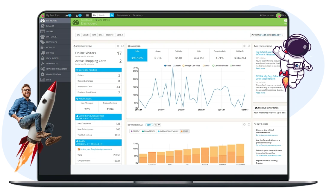 Implement personalized solutions that will increase the performance of the PrestaShop store.